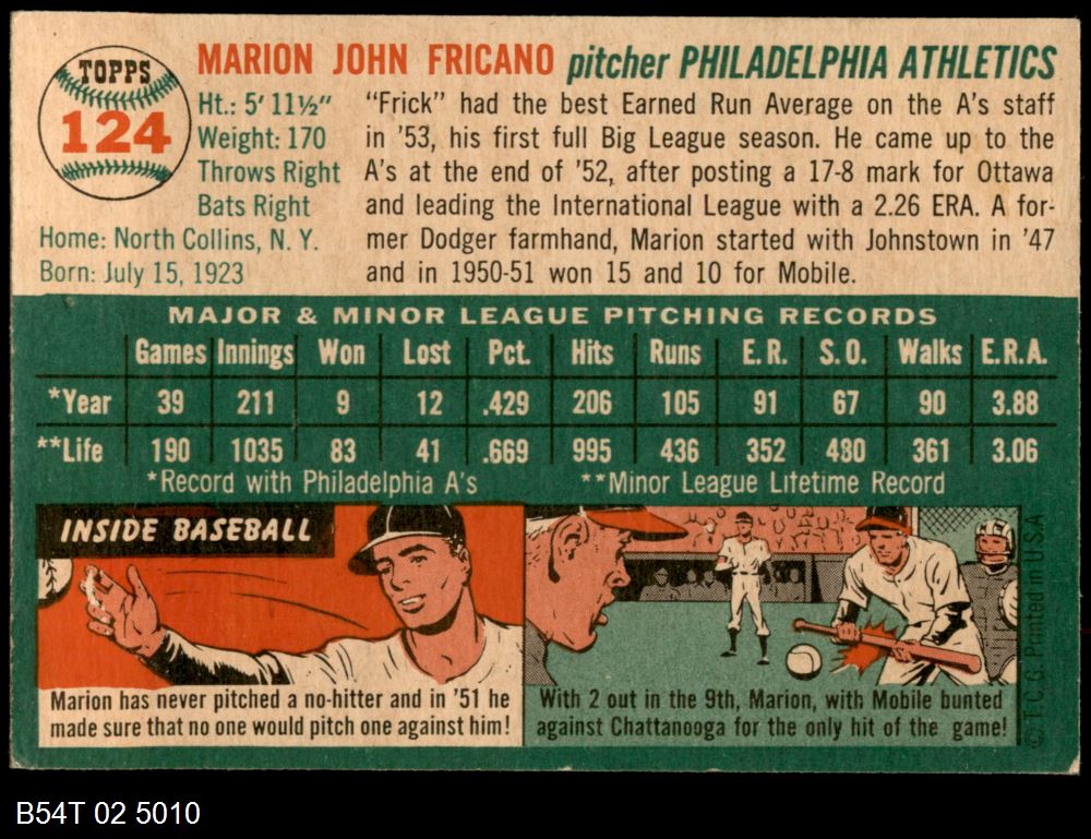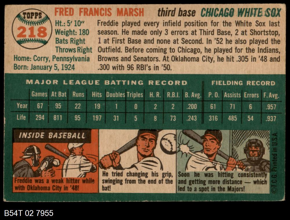 | 1954 Topps #218 Fred Marsh | 4 - VG/EX | Front | Back |