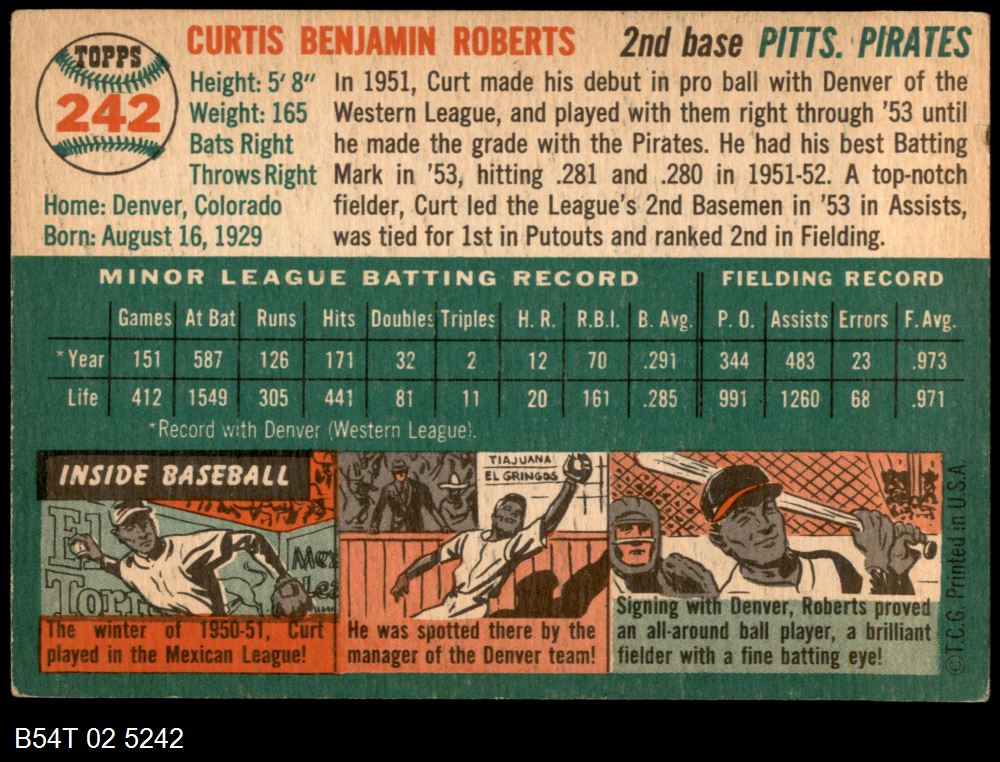 | 1954 Topps #242 Curt Roberts | 4 - VG/EX | Front | Back |