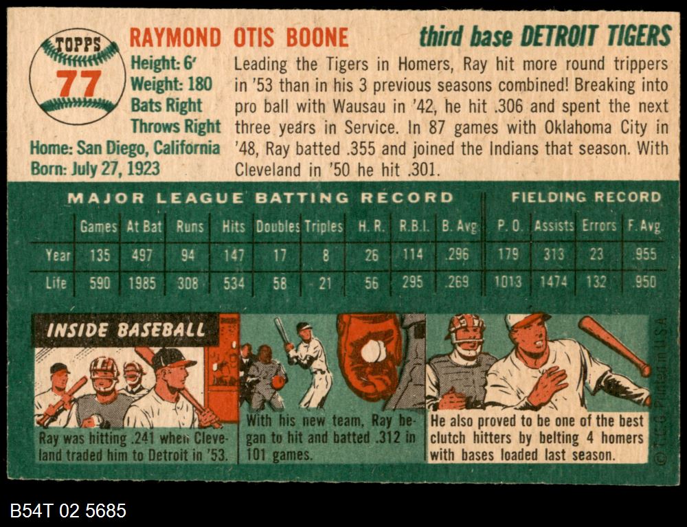| 1954 Topps #77 Ray Boone | 6 - EX/MT | Front | Back |