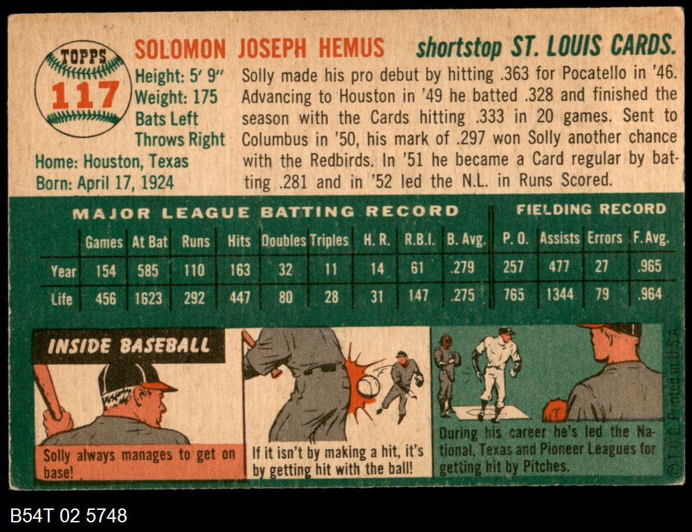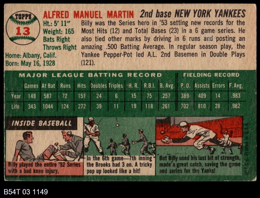 | 1954 Topps #13 WHT Billy Martin | 5 - EX | Front | Back |