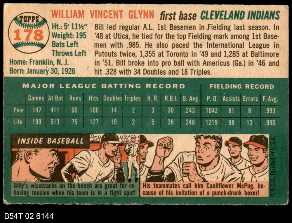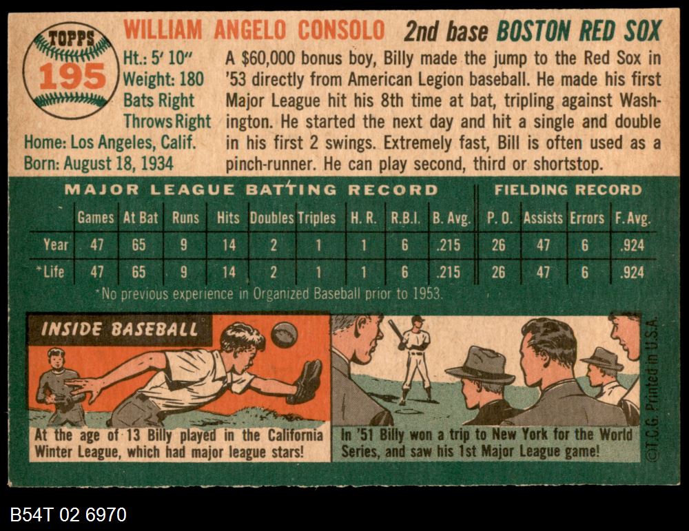 | 1954 Topps #195 Billy Consolo | 5 - EX | Front | Back |