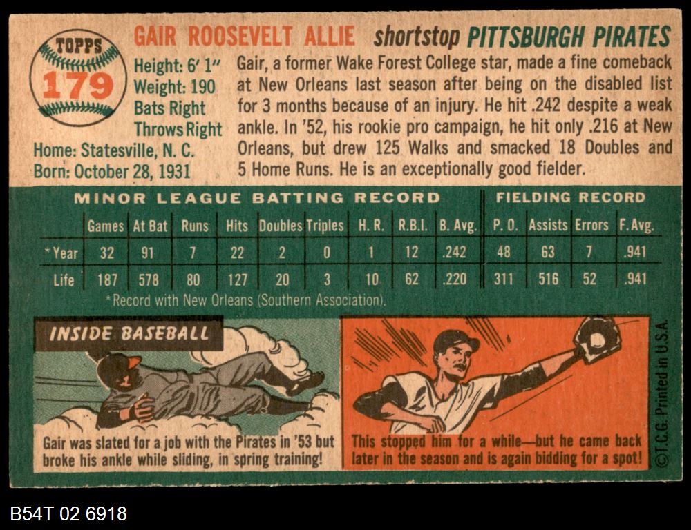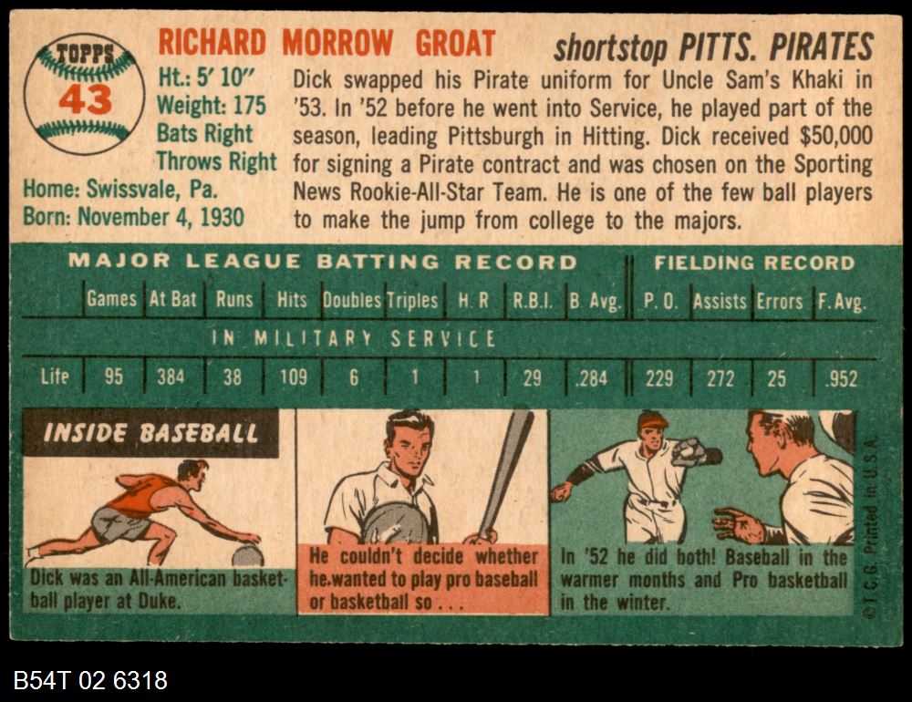 | 1954 Topps #43 WHT Dick Groat | 6 - EX/MT | Front | Back |