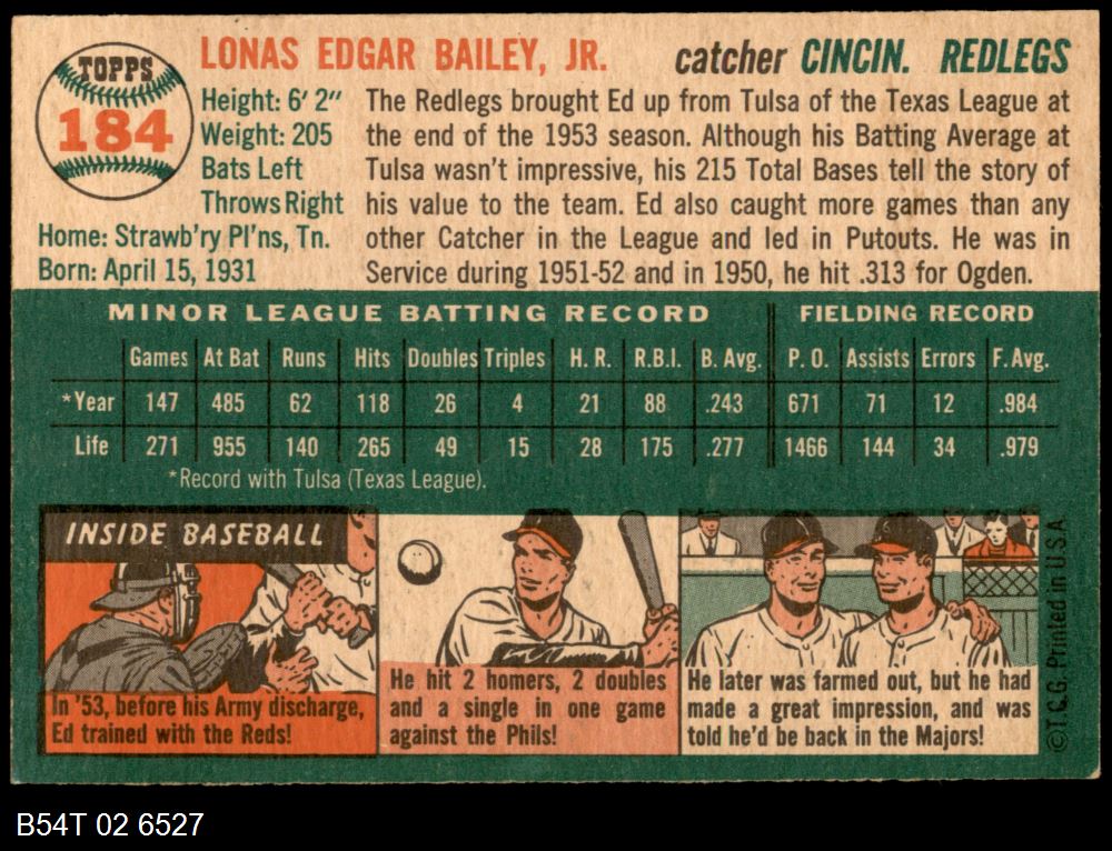 | 1954 Topps #184 Ed Bailey | 5 - EX | Front | Back |