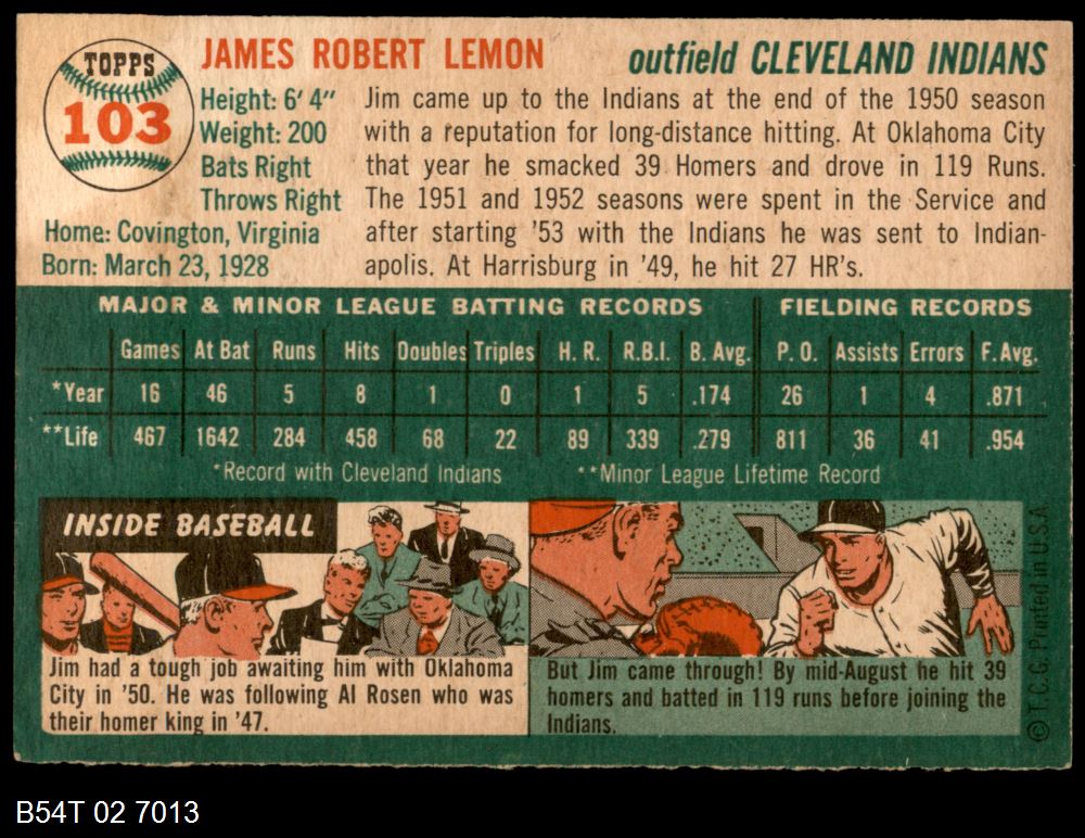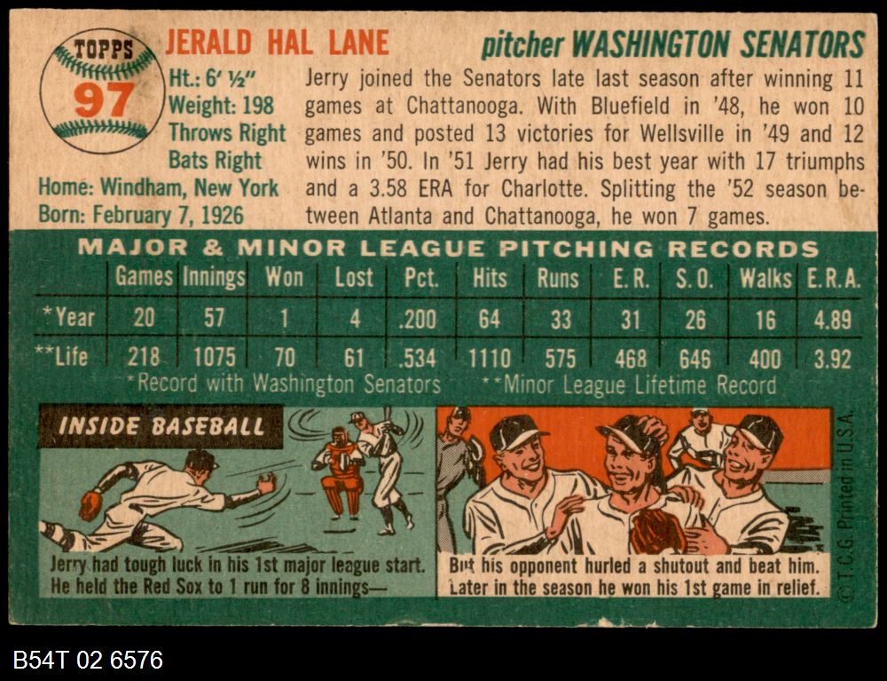 | 1954 Topps #97 Jerry Lane | 4 - VG/EX | Front | Back |