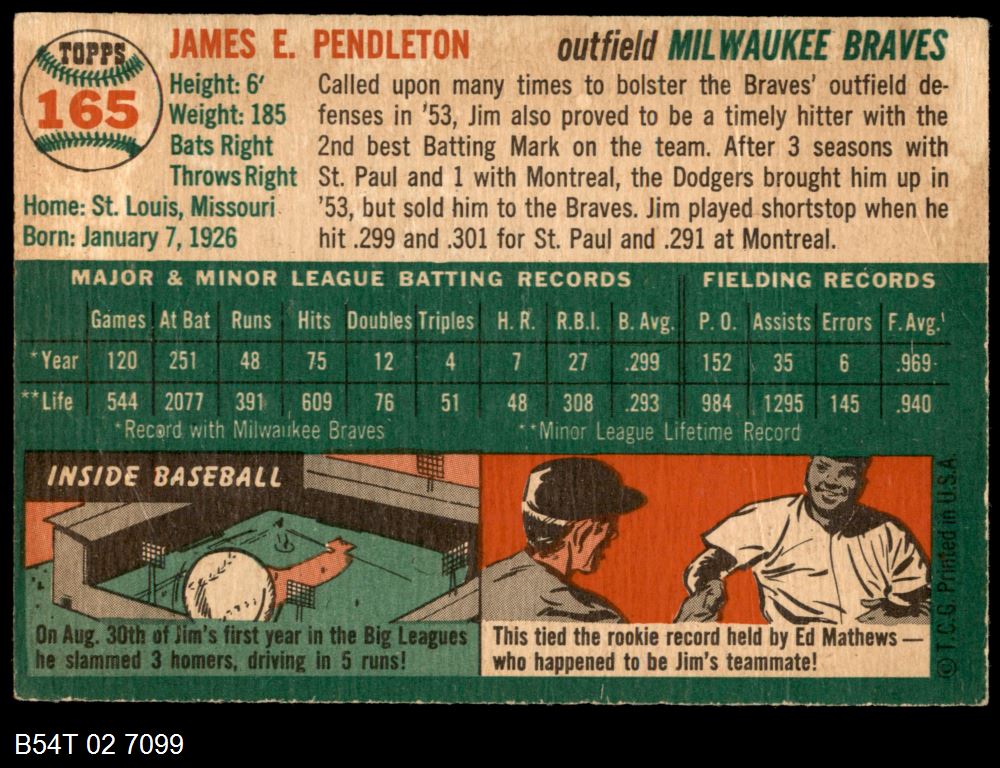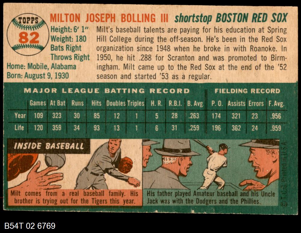 | 1954 Topps #82 Milt Bolling | 5 - EX | Front | Back |