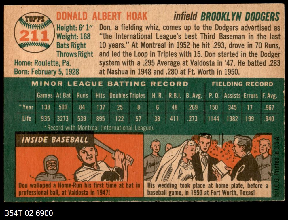 | 1954 Topps #211 Don Hoak | 5 - EX | Front | Back |