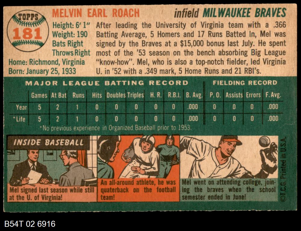 | 1954 Topps #181 Mel Roach | 5 - EX | Front | Back |