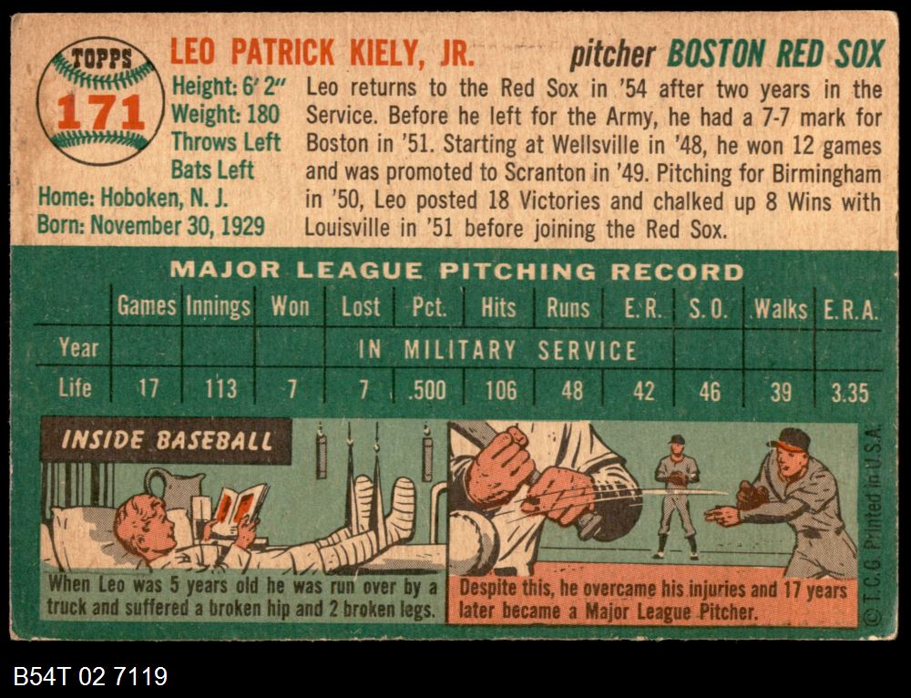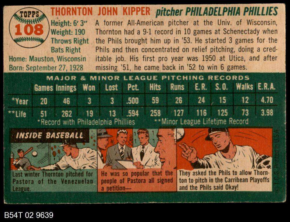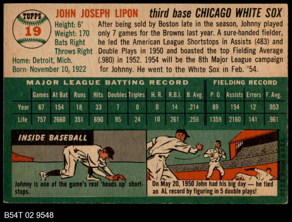 | 1954 Topps #19 WHT John Lipon | 5 - EX | Front | Back |