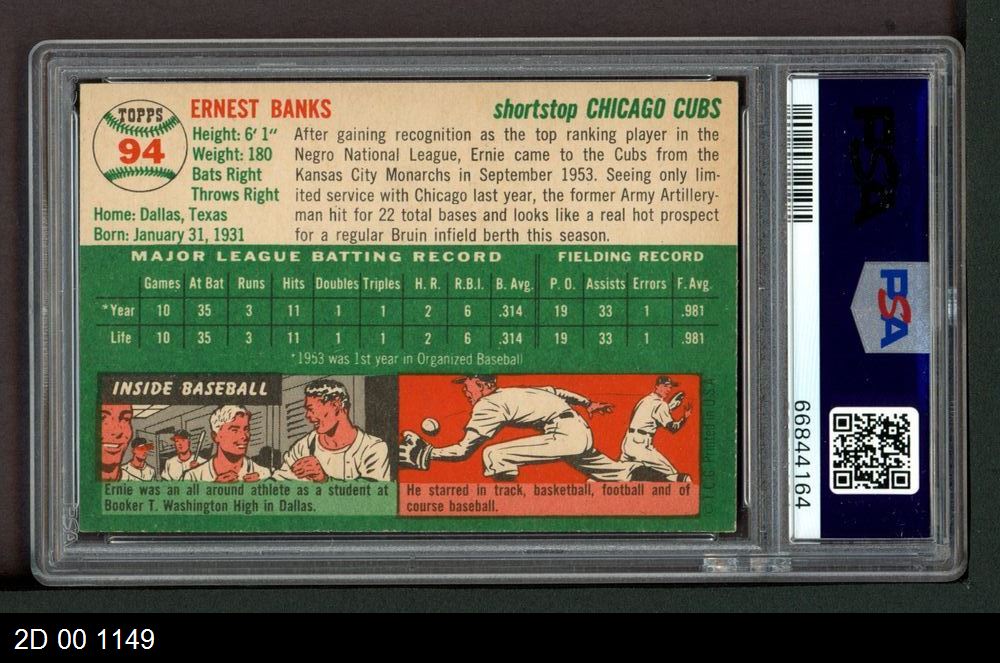 | 1954 Topps #94 Ernie Banks | PSA 6 - EX/MT | Front | Back |