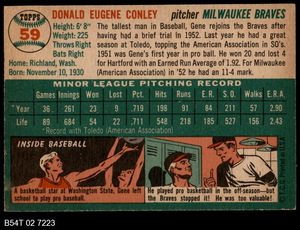 | 1954 Topps #59 Gene Conley | 3 - VG | Front | Back |