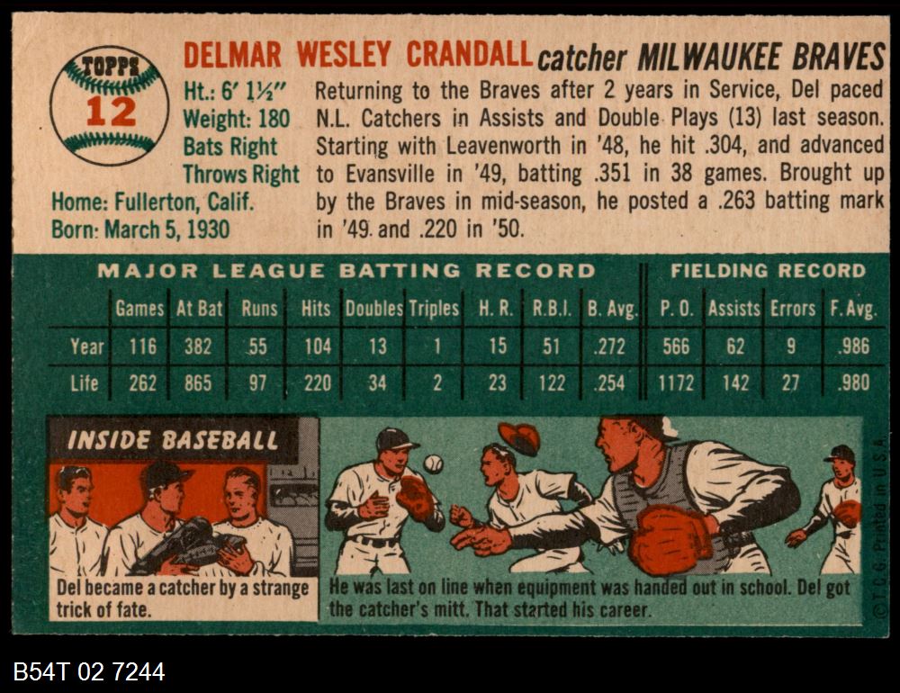 | 1954 Topps #12 WHT Del Crandall | 5 - EX | Front | Back |
