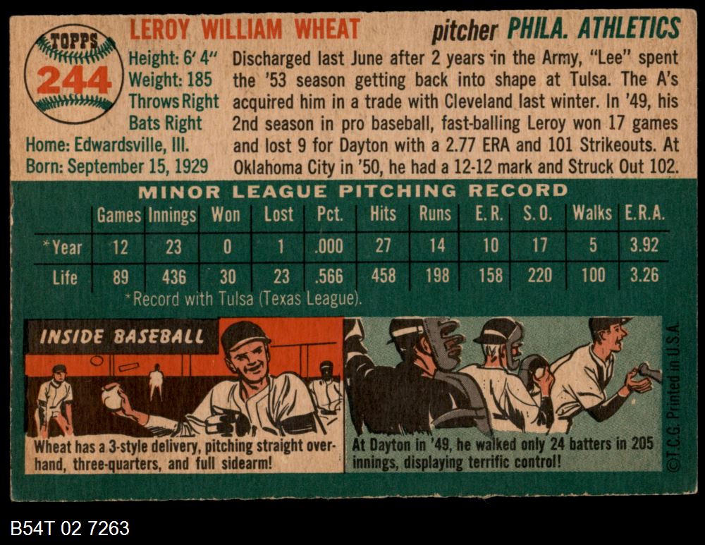 | 1954 Topps #244 Leroy Wheat | 5 - EX | Front | Back |