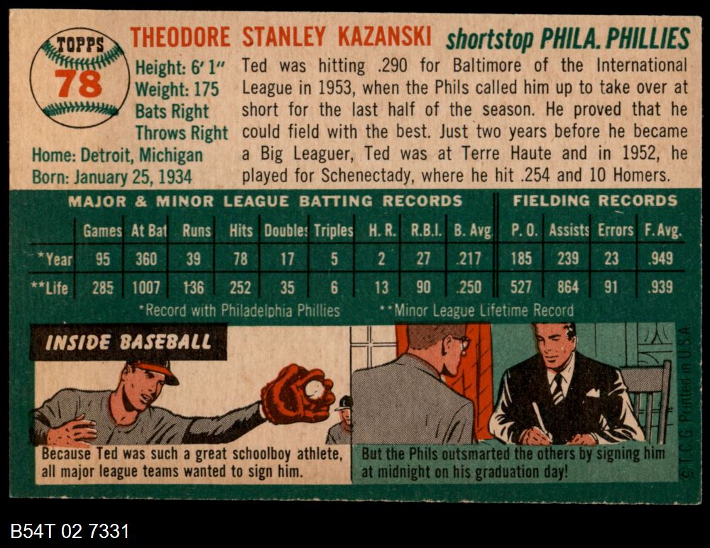| 1954 Topps #78 Ted Kazanski | 5 - EX | Front | Back |