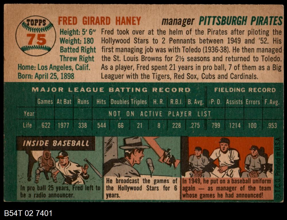 | 1954 Topps #75 Fred Haney | 4 - VG/EX | Front | Back |