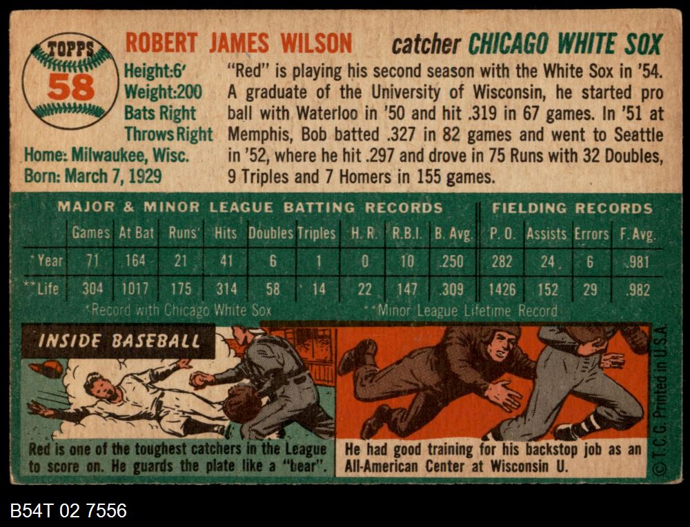 | 1954 Topps #58 Bob Wilson | 4 - VG/EX | Front | Back |