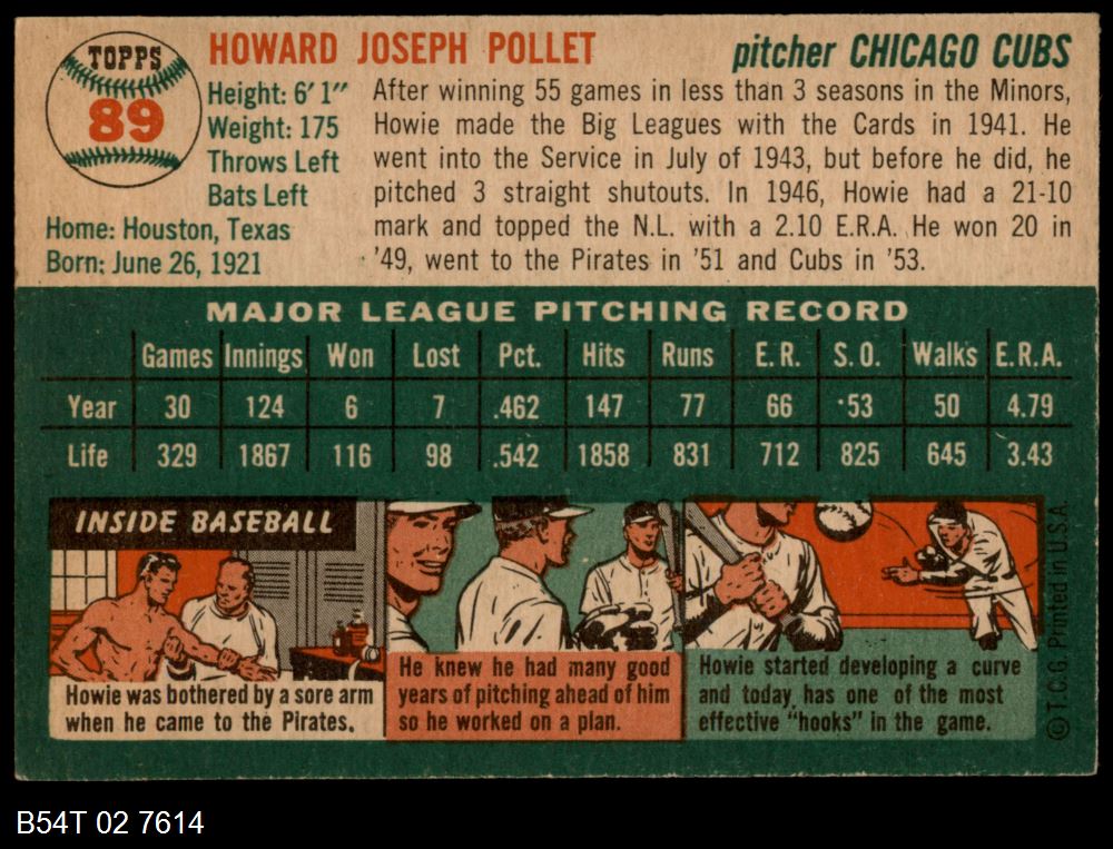 | 1954 Topps #89 Howie Pollet | 4 - VG/EX | Front | Back |