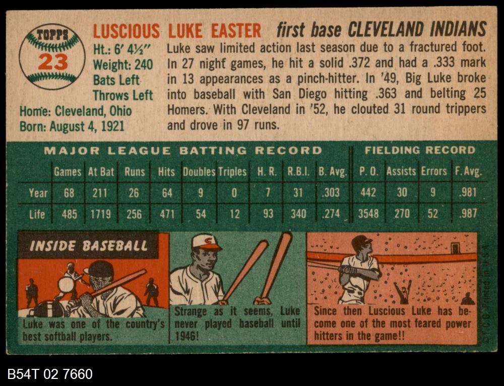 | 1954 Topps #23 WHT Luke Easter | 5 - EX | Front | Back |