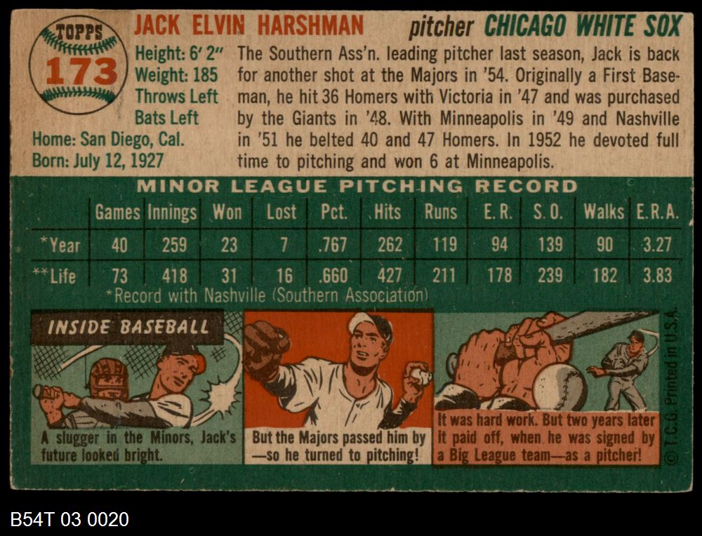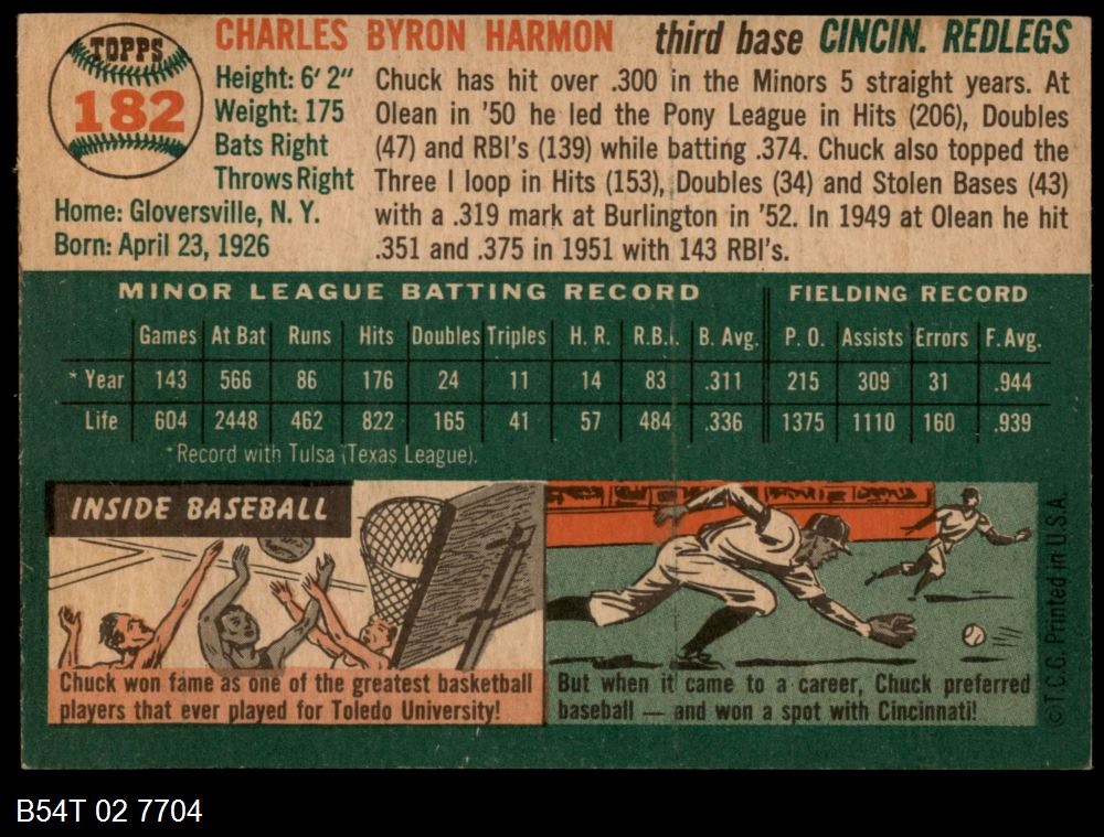 | 1954 Topps #182 Chuck Harmon | 4 - VG/EX | Front | Back |