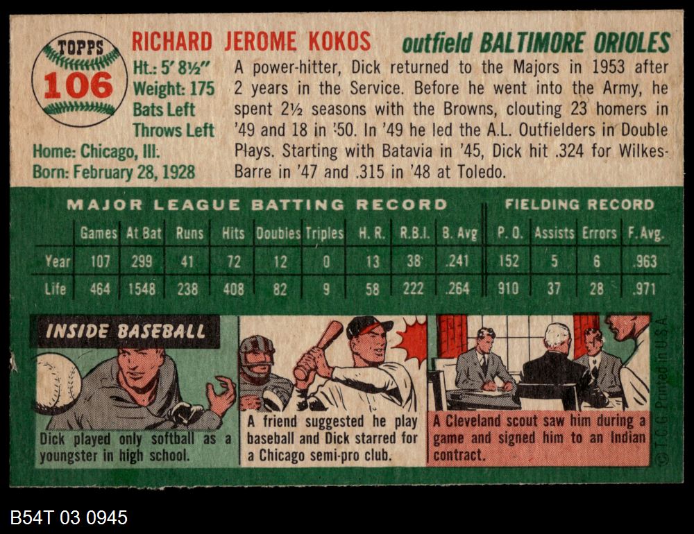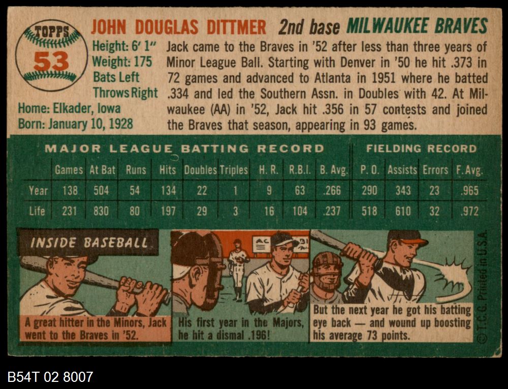 | 1954 Topps #53 Jack Dittmer | 4 - VG/EX | Front | Back |