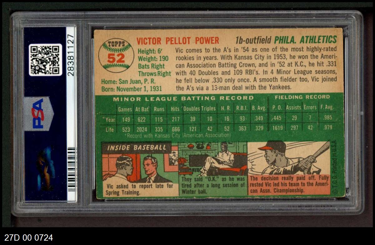 | 1954 Topps #52 Vic Power | PSA 5 - EX | Front | Back |