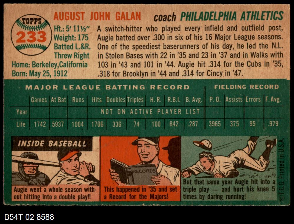| 1954 Topps #233 Augie Galan | 4 - VG/EX | Front | Back |