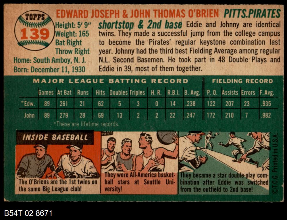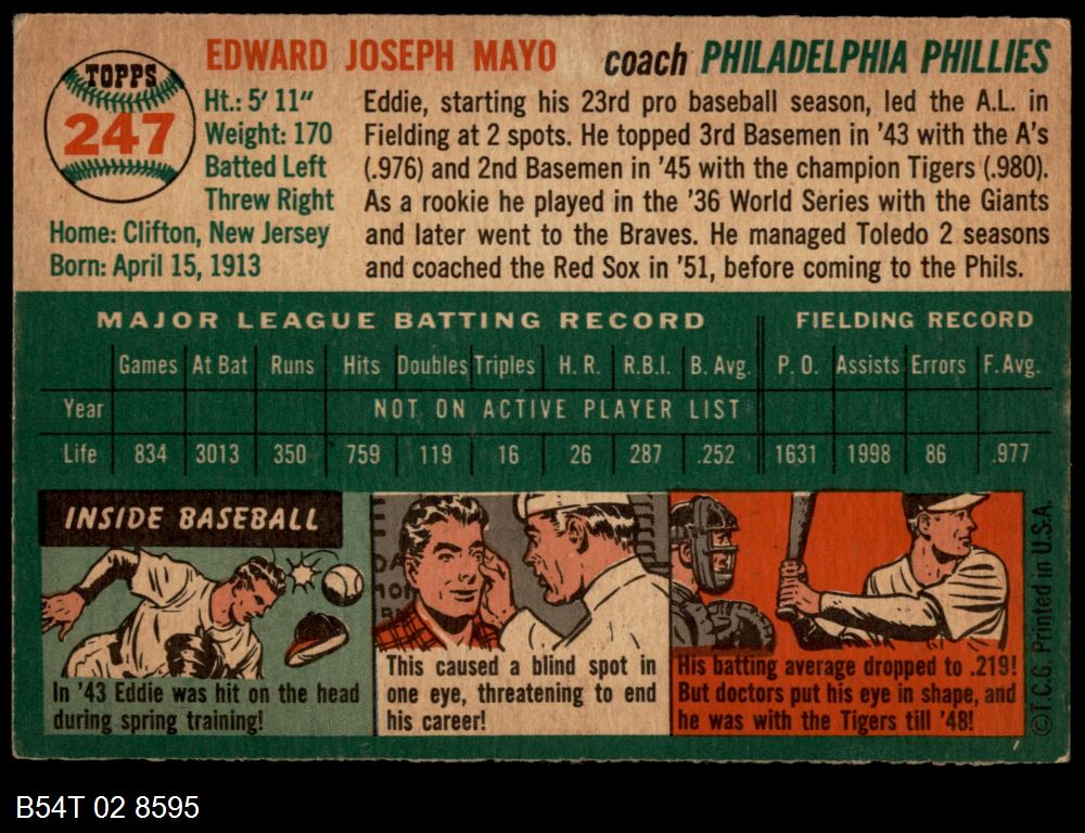 | 1954 Topps #247 Eddie Mayo | 4 - VG/EX | Front | Back |
