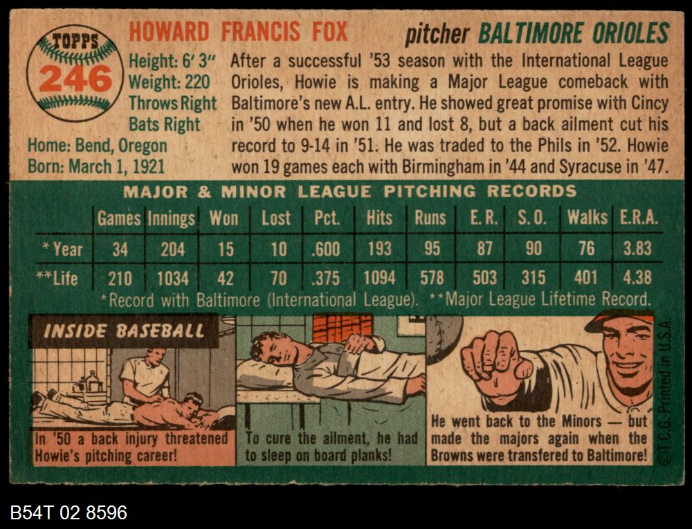 | 1954 Topps #246 Howard Fox | 4 - VG/EX | Front | Back |