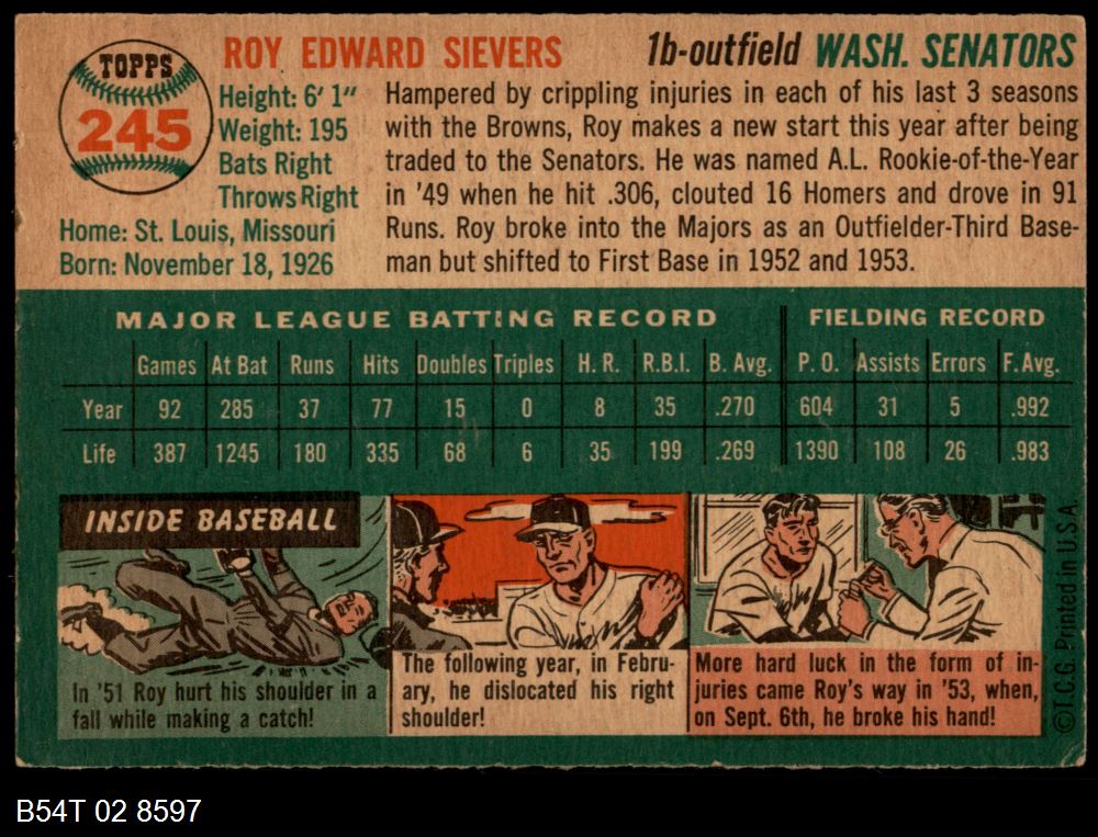 | 1954 Topps #245 Roy Sievers | 4 - VG/EX | Front | Back |