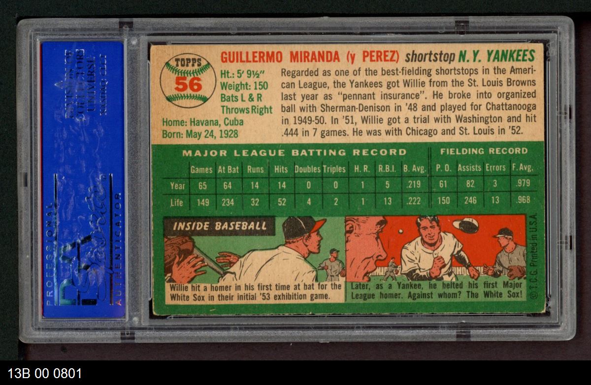 | 1954 Topps #56 Willie Miranda | PSA 5 - EX | Front | Back |