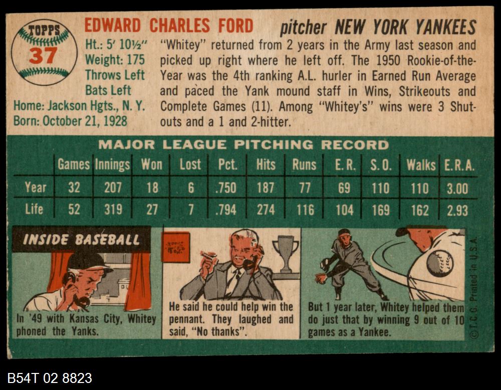 | 1954 Topps #37 WHT Whitey Ford | 4 - VG/EX | Front | Back |