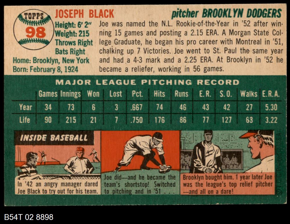 | 1954 Topps #98 Joe Black | 5 - EX | Front | Back |