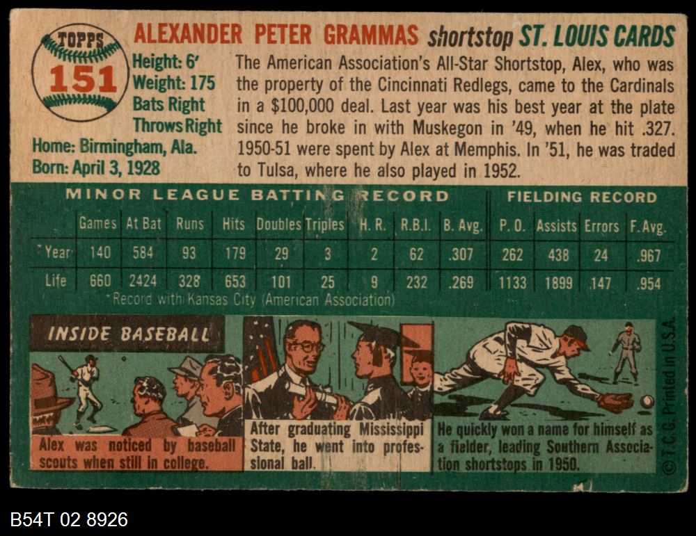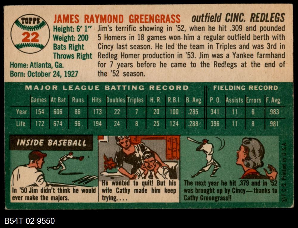 | 1954 Topps #22 WHT Jim Greengrass | 5 - EX | Front | Back |