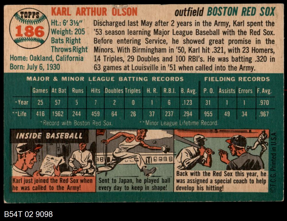 | 1954 Topps #186 Karl Olson | 5 - EX | Front | Back |