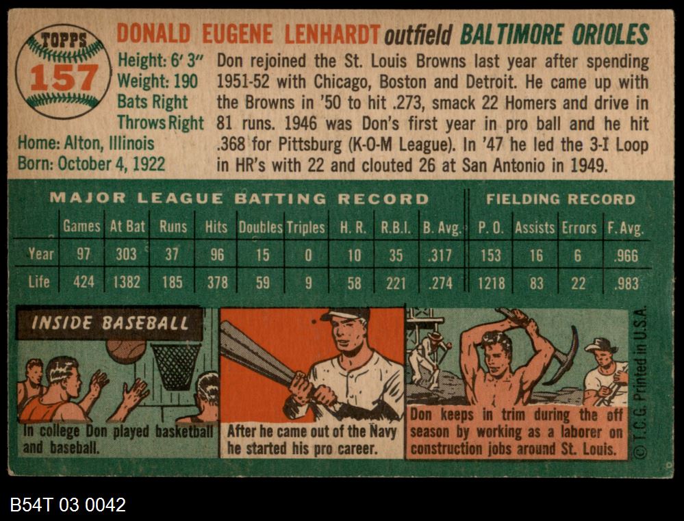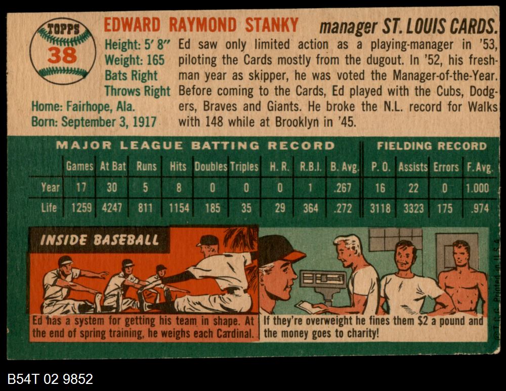 | 1954 Topps #38 WHT Eddie Stanky | 5 - EX | Front | Back |
