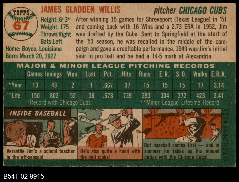 | 1954 Topps #67 Jim Willis | 5 - EX | Front | Back |