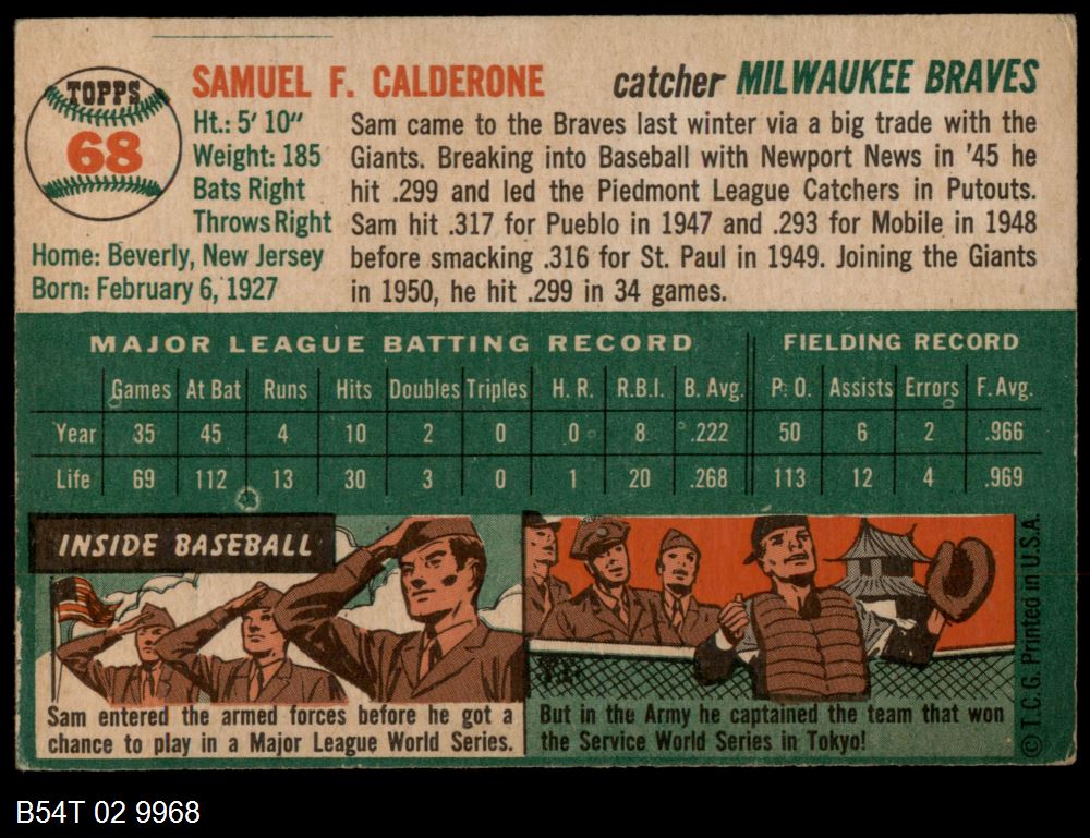 | 1954 Topps #68 Sammy Calderone | 3 - VG | Front | Back |