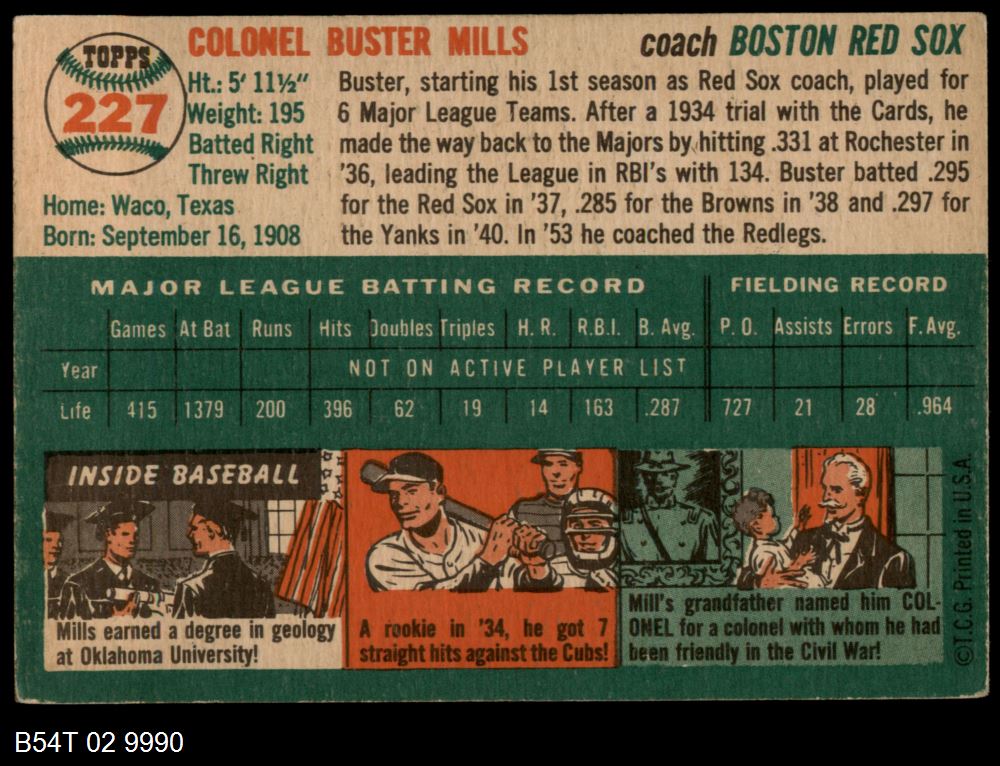 | 1954 Topps #227 Buster Mills | 4 - VG/EX | Front | Back |