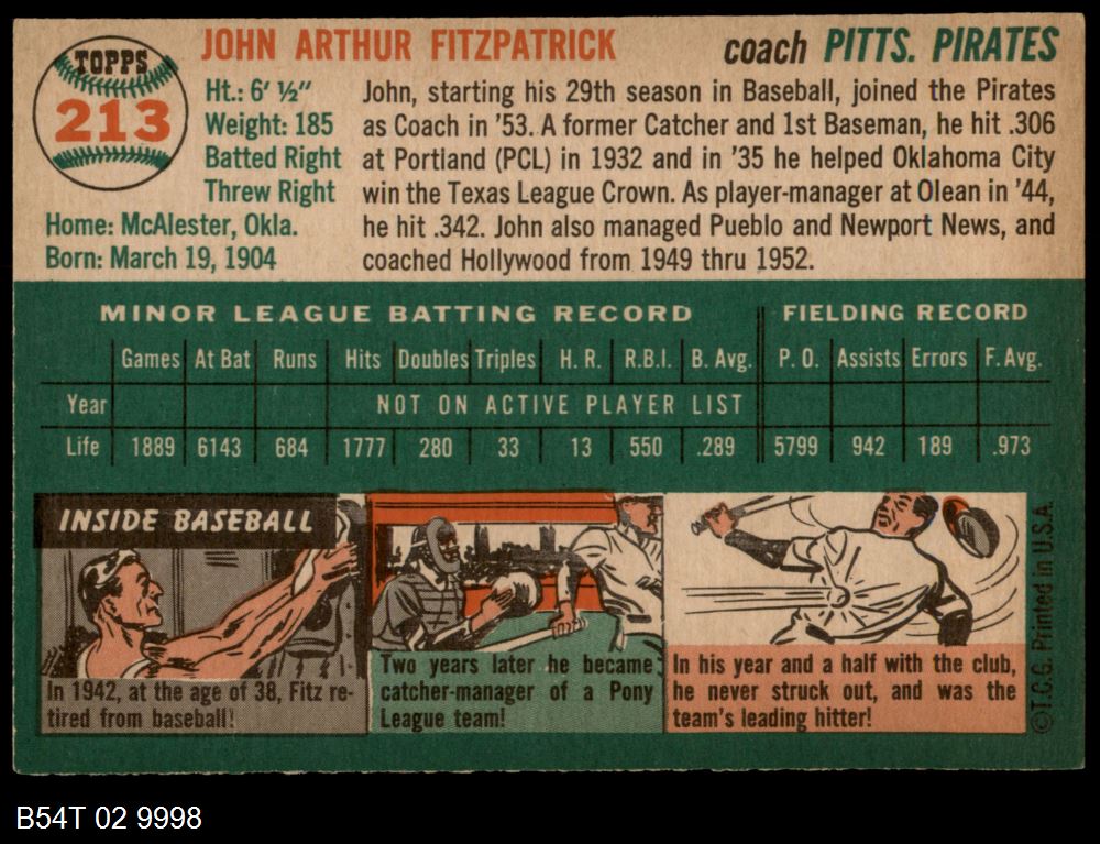 | 1954 Topps #213 John Fitzpatrick | 5 - EX | Front | Back |