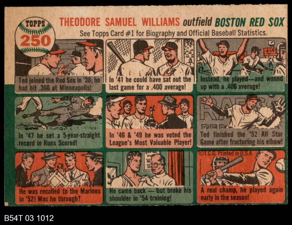 | 1954 Topps #250 Ted Williams | 4 - VG/EX | Front | Back |