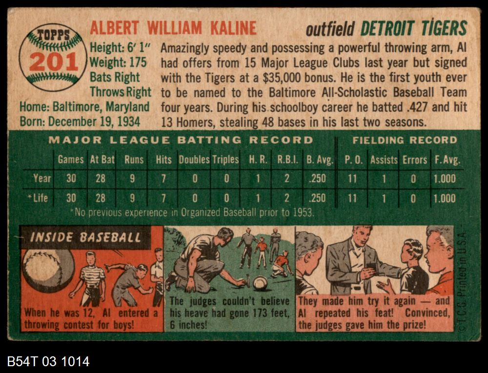 | 1954 Topps #201 Al Kaline | 3 - VG | Front | Back |