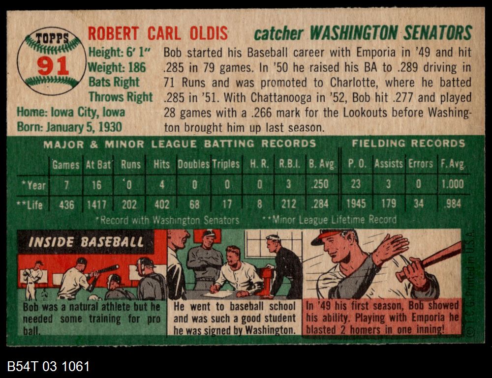 | 1954 Topps #91 Bob Oldis | 4 - VG/EX | Front | Back |