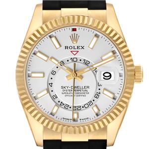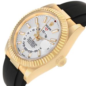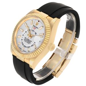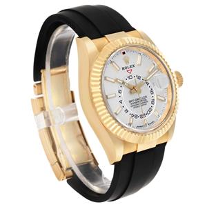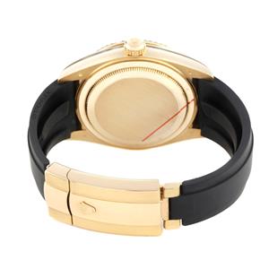 Black rubber Oysterflex strap with an 18K yellow gold flip-lock clasp. |