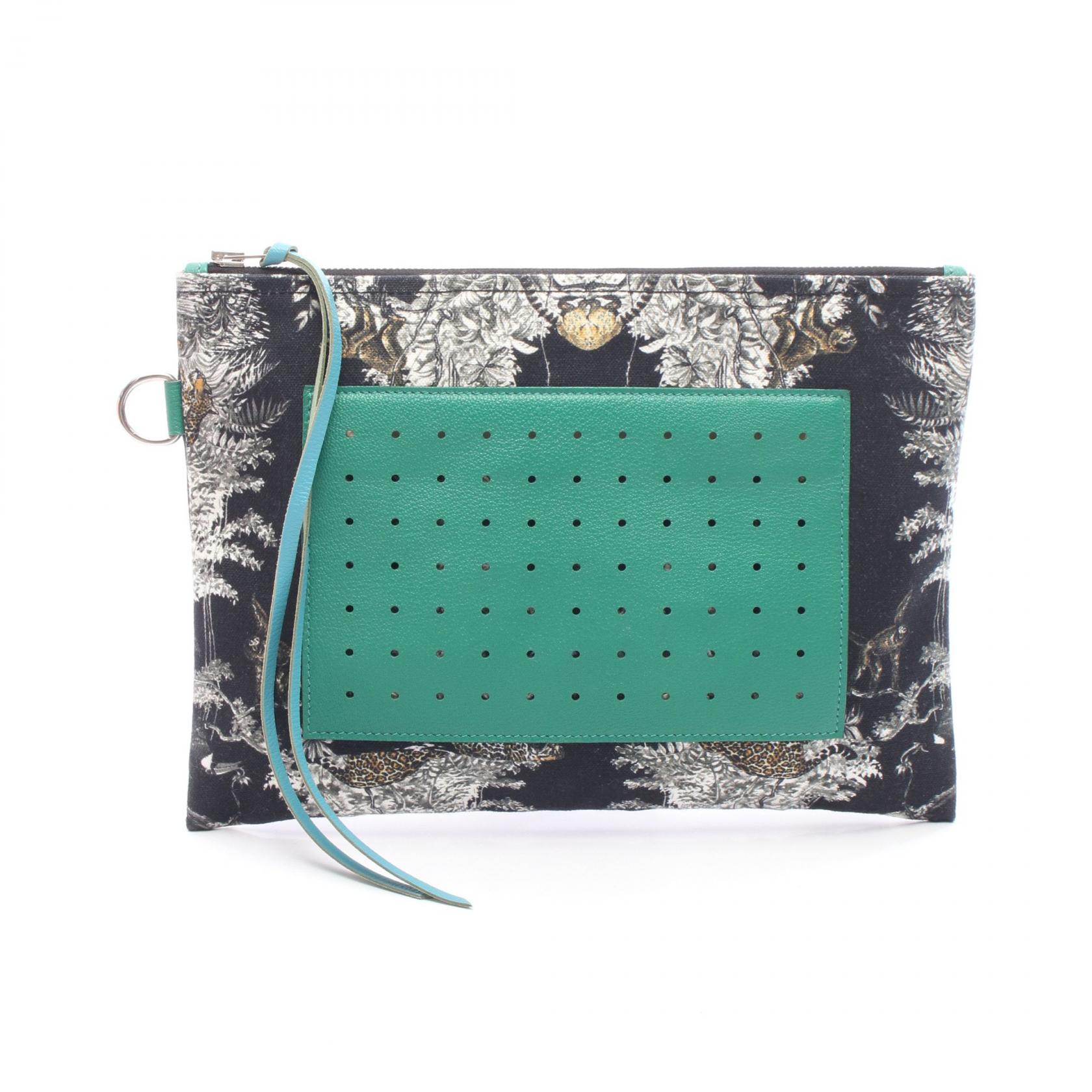 | Item Name | HERMES Navette PM Pouch Case canvas Chevre leather Black Green SHW Used Women |