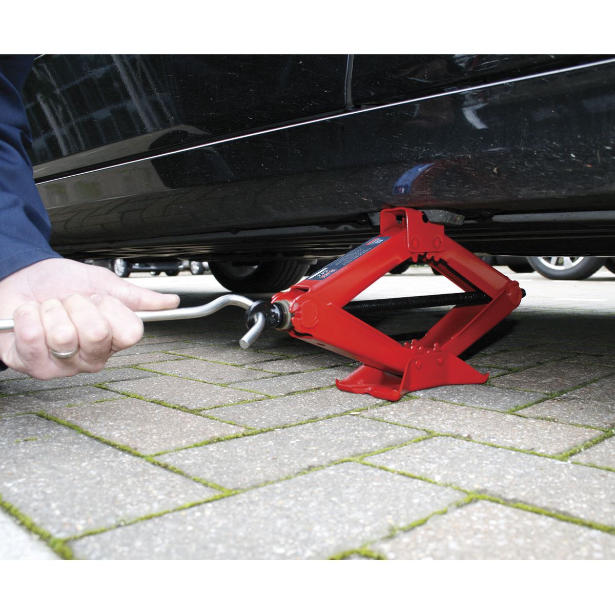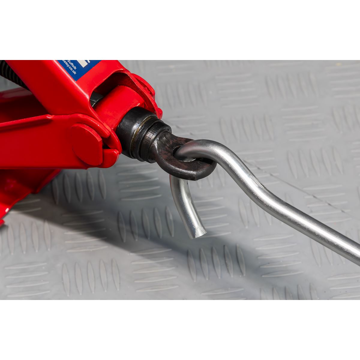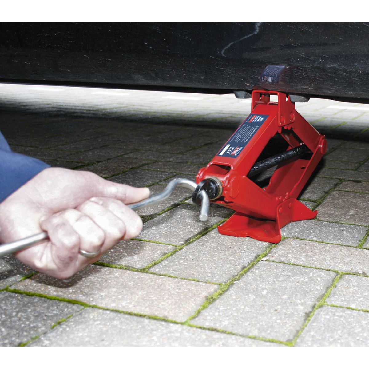 Simple and effective design makes it a perfect tool for emergency lifting of a vehicle for maintenance, repairs and tyre changing. Easily stored and transported within your vehicle, ready for when needed. Fine rolled thread and precision made thrust bearing for long-life and smooth operation. The pivoted crank handle allows for low ground clearance, is long enough to clear the vehicle's bodywork and is easy to store with the jack. The jack can be raised using the supplied folding crank handle or a 17mm socket or ratchet spanner. A hardened steel frame and a wide base ensure a solid and stable lift.