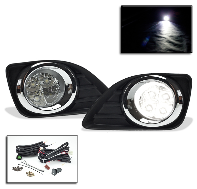 A pair of fog lights (driver and passenger side), wiring harness, and switch