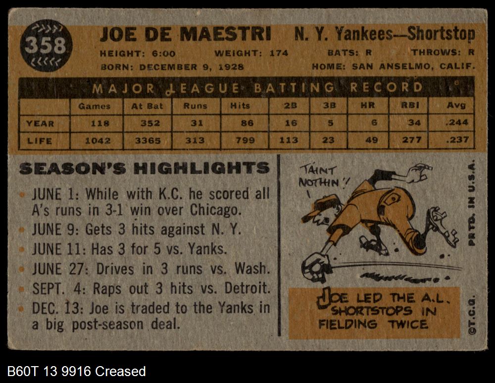 This set does not include the following cards: #35 Whitey Ford, #51 Jim Coates, #65 Elston Howard, #83 Tony Kubek, #102 Kent Hadley, #160 Rival All-Stars - Mickey Mantle / Ken Boyer, #183 Eli Grba, #405 Bobby Richardson, #465 Yankees Coaches - Bill Dickey / Ralph Houk / Frank Crosetti / Ed Lopat, #522 Ken Hunt, #553 All-Star - Bill Skowron