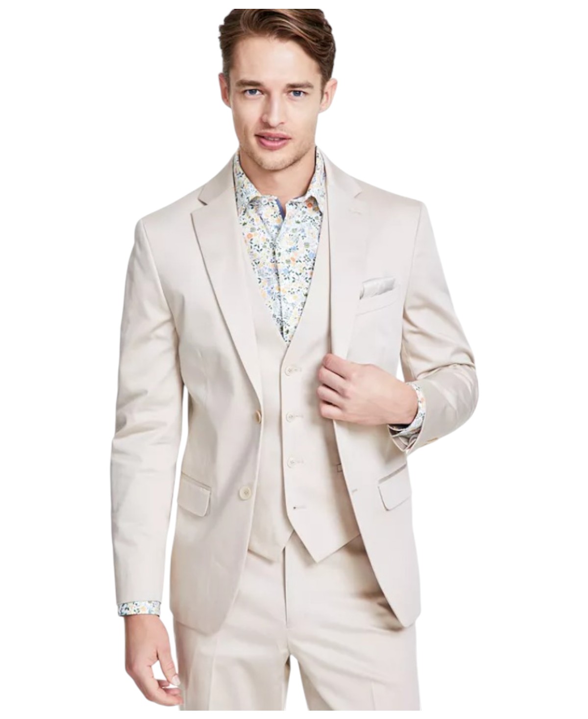 Bar Iii Mens Slim fit Suit Jacket Blazer 40 L Beige Solid Stretch