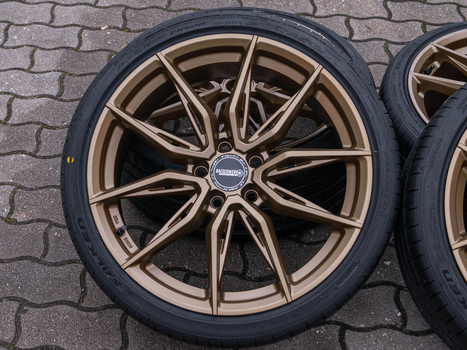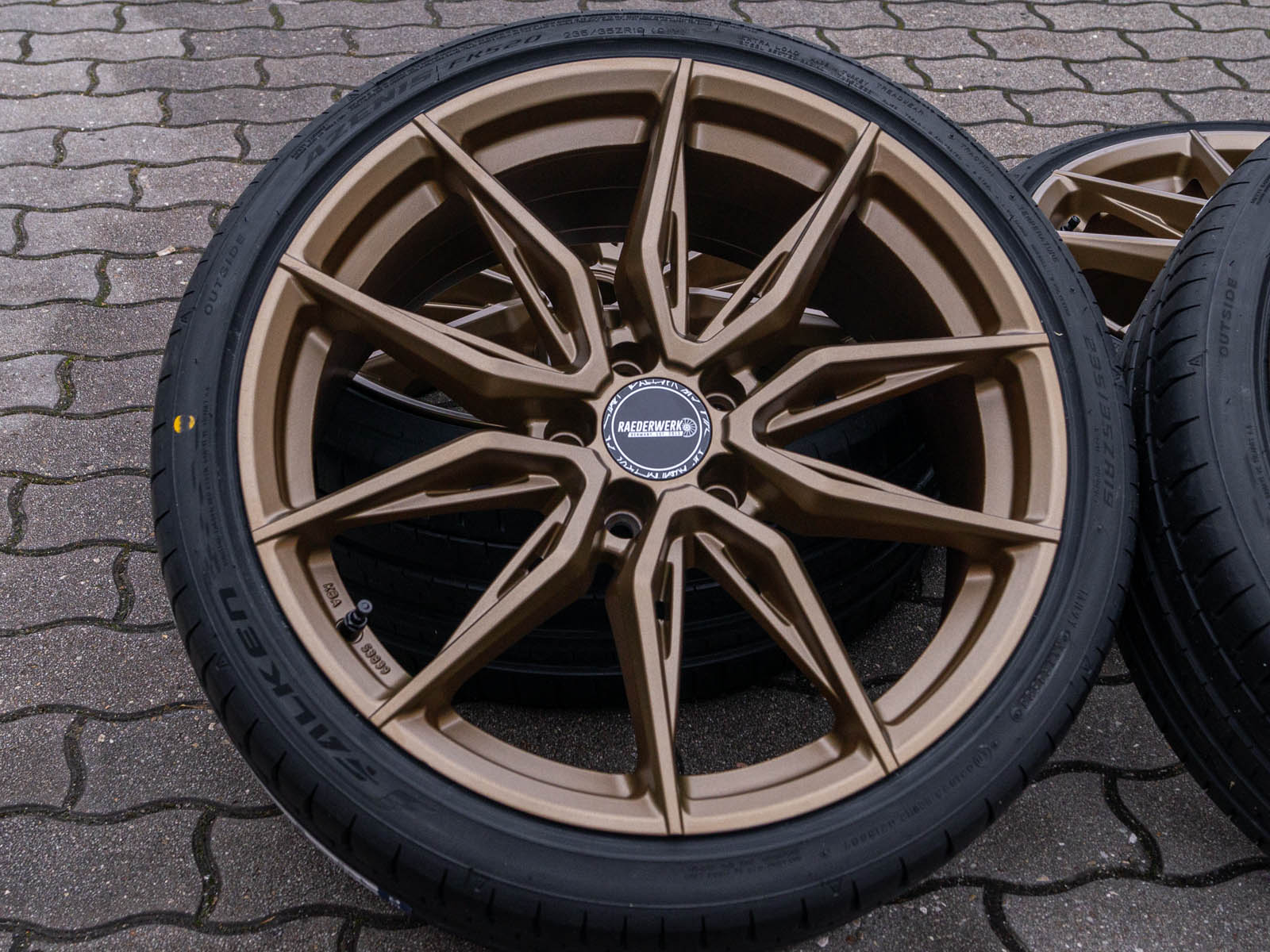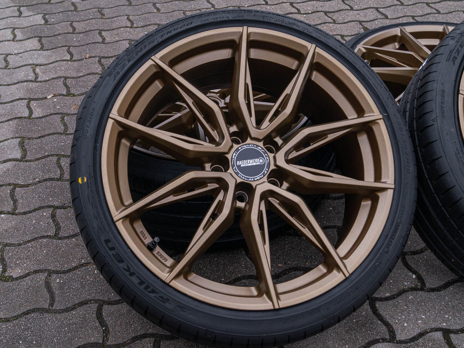 4x neue Ganzjahreskompletträder (montiert und gewuchtet) in 19 Zoll - Felge: RW02 8,5x19 ET35 5x120 Bronze Matt - Reifen: Tageseinkauf (Tracmax, Tristar, Fortuna etc.) 225/40 R19 - 1x ABE/Gutachten - 4x Nabendeckel Raederwerk - gegen Aufpreis mit Reifendrucksensoren RDKS lieferbar