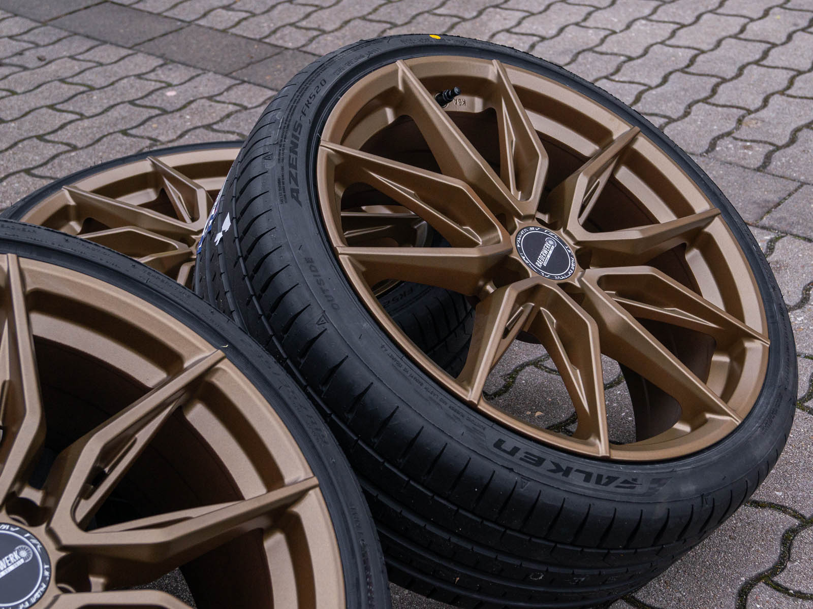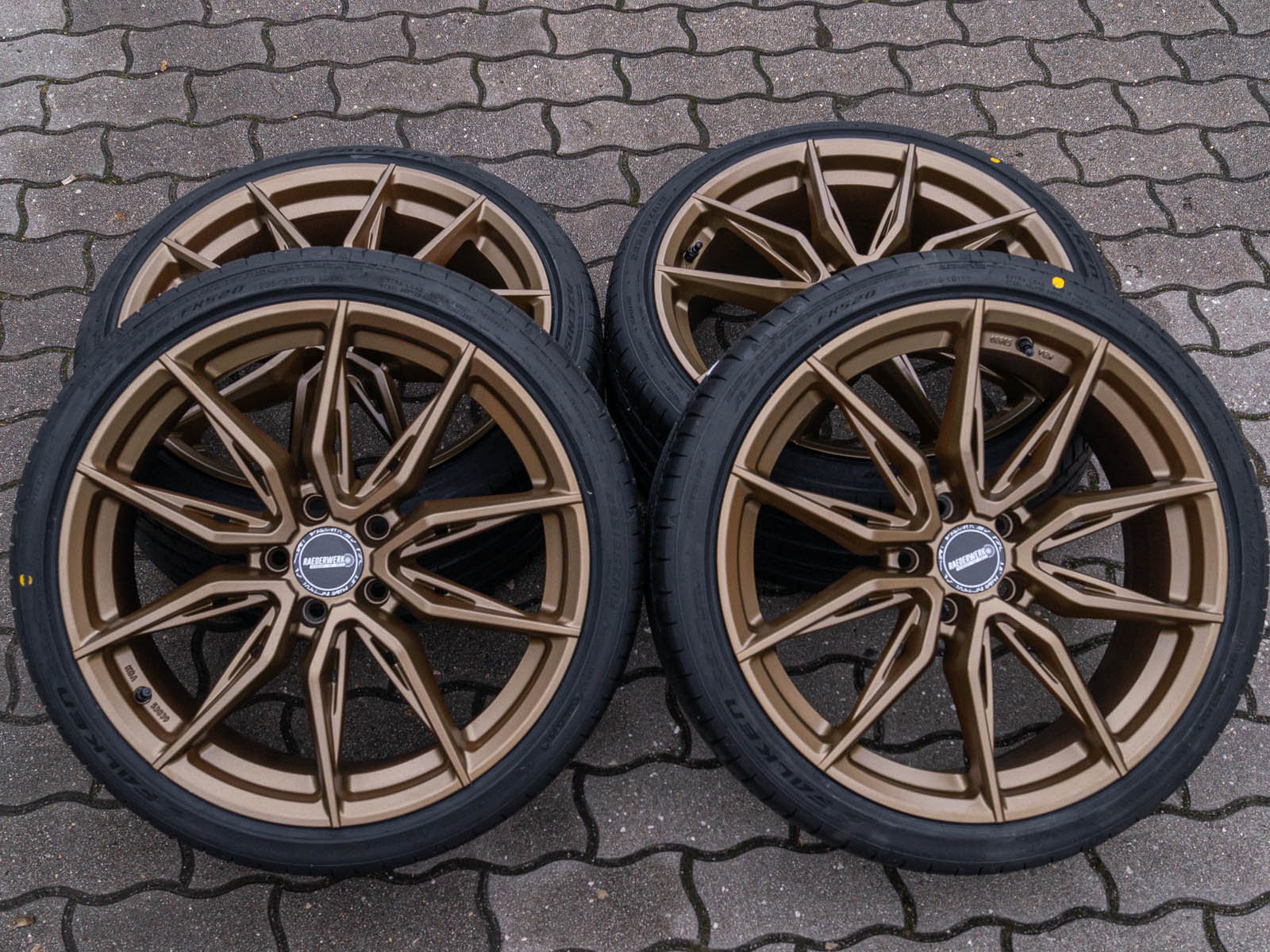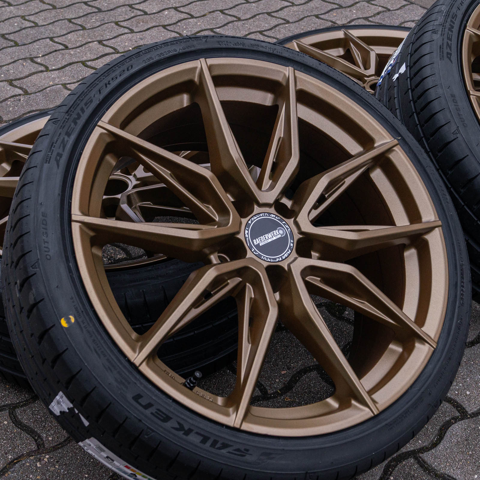 4x neue Ganzjahreskompletträder (montiert und gewuchtet) in 19 Zoll - Felge: RW02 8,5x19 ET35 5x120 Bronze Matt - Reifen: Tageseinkauf (Tracmax, Tristar, Fortuna etc.) 225/40 R19 - 1x ABE/Gutachten - 4x Nabendeckel Raederwerk - gegen Aufpreis mit Reifendrucksensoren RDKS lieferbar
