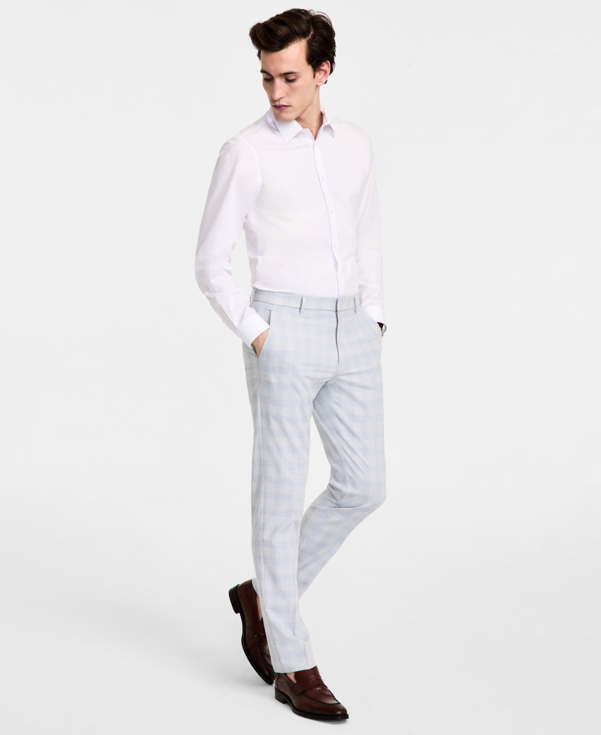 Tommy Hilfiger Mens Modern fit Dress Pants 38 / 32 Light Grey Plaid